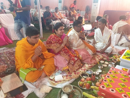 21अप्रैल को भुवनेश्वर आईआरसी विलेज के एन-350,ओमनिवास पर चिर.आर्यमन डालमिया का जनेऊ संस्कार हुआ। उनके साथ डालमिया परिवार की ओर से एक गरीब ब्राह्मण-बच्चे का भी उसी शान-शौकत के साथ जनेऊ संस्कार संपन्न हुआ। पुरी के आचार्य पण्डित सूर्यनारायण रथशर्मा,वाराणसी के आचार्य तरुण शर्मा,मिथिला के आचार्य पवन झा तथा ओमनिवास के स्थाई पूजक आचार्य वेणुधर आदि ने जनेऊ संस्कार से संबंधित समस्त आध्यात्मिक अनुष्ठान पूरे विधि-विधान के साथ कराया। अवसर पर महाप्रभु के प्रथम सेवक तथा पुरी के गजपति महाराजा दिव्य सिंहदेव भी डालमिया-परिवार का निमंत्रण स्वीकारकर पधारे तथा महारानी लीलावती एवं राजकुमारी देबेसी देवी के साथ आर्यमन डालमिया तथा ब्राह्मण बच्चे को दिव्य आशीष प्रदान किया। जनेऊ संस्कार की जानकारी देते हुए आचार्य तरुण शर्मा ने बताया कि इसे उपनयन संस्कार तथा यज्ञोपवीत संस्कार भी कहते हैं।सनातनी परंपरा के अनुसार पुत्र जब 12 से 14 वर्ष आयु का हो जाय तो उसका जनेऊ संस्कार कर देना चाहिए। उनके अनुसार पुत्र जब जन्म लेता है तो उसको तीन ऋण चुकाने पड़ते हैं,देव, ऋषि तथा पितृ ऋण।यही नहीं,जनेऊ संस्कार में पांच देवों, ब्रह्मा, विष्णु, शिव,यज्ञदेव तथा सूर्य की पूजा यहां पर संपन्न हुई है।ये सभी आज आर्यमन डालमिया तथा ब्राह्मण पुत्र को क्रमश: आत्मबल, समृद्धि, सुव्यवस्था, परमार्थ और पराक्रम प्रदान करेंगे। उन्होंने यह भी स्पष्ट किया कि जनेऊ के 9धागों में 9देवता निवास करते हैं, ओंकार, अग्नि,अनन्त, चन्द्र,पितृ, प्रजापति,वायु, सूर्य तथा समस्त देवगण। यज्ञोपवीत में 9शक्तियों का निवास होता है। उन्होंने बताया कि जनेऊ संस्कार के विषय में ऐसी मान्यता है कि जिस प्रकार इन्द्र को वृहस्पति ने जनेऊ दिया था उसी प्रकार बेटे की आयु, बुद्धि,बल और संपत्ति की वृद्धि के लिए आजीवन जनेऊ अवश्य धारण करना चाहिए। पण्डित सूर्यनारायण रथशर्मा ने बताया कि यह भुवनेश्वर का पहला डालमिया-परिवार है जो वैश्य होकर भी जनेऊ धारण करता है। उन्होंने अपने मुख्य यजमान उद्योगपति सुरेन्द्र कुमार डालमिया के नाम का उल्लेख किया जो आज भी जनेऊ धारण करते हैं।सभी आचार्यों के अनुसार मानव-जीवन में 16 संस्कारों में जनेऊ संस्कार का विशेष महत्त्व है जिसका अनुपालन करना चाहिए। आयोजन के क्रम में कर्णभेदन,केश-मुण्डन तथा भिक्षाटन का अनुपम दृश्य देखने को मिला। आयोजन में सादर आमंत्रित हैदराबाद से श्री लक्ष्मीनंदन सोनथालिया,तारा देवी,सुनील,रीचा,वंश और आराधना, वरुण चोखानी, नम्रता चोखानी, वेदिका,मनोज सोनथालिया, बनिता सोनथालिया,आशा कासेरा,सीय कासेरा,विनोद सोनथालिया,दीपाली सोनथालिया,रवींद्र अग्रवाल,सरिता अग्रवाल,राजू पोद्दार,झारसुगुडा,गोपाल डालमिया कोलकाता,समस्त डाल