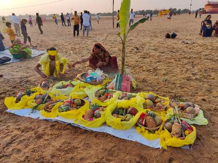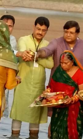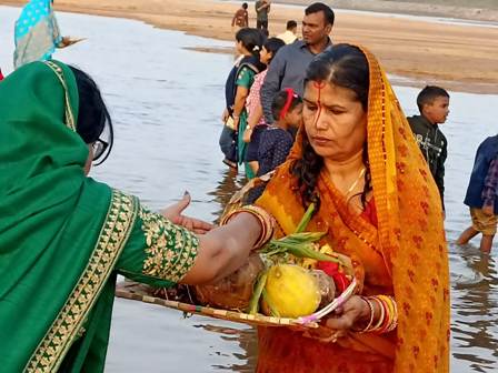 आस्था के चार दिवसीय महापर्व छठ के तीसरे दिन विश्वास भुनेश्वर ने न्यू बाली यात्रा कुआखाई छठ के घाट पर पूरी सफलता के साथ आयोजित किया भगवान सूर्यदेव और छठ परमेश्वरी के सायंकालीन अर्घ्य का कार्यक्रम। शाम को 5:00 से भगवान सूर्य देव और छठ परमेश्वरी को छठ व्रतियों ने जल में पश्चिम दिशा में मुंह करके खड़े होकर डूबते हुए सूरज की पूजा की और उनको जल और दूध से अर्घ्य दिया। छठ परमेश्वरी देवी की पूजा की और अर्घ्य दिया। शाम के अर्घ्य देनेवालों ओडिशा सरकार के मंत्री अशोक चंद्र पंडा, विधायक प्रशांत राउत तथा भुवनेश्वर महानगर निगम की मेयर सुलोचना दास आदि प्रमुख थे गौरतलब है छठ पूजा का प्रचलन जो बिहार प्रांत से आरंभ हुआ आज ओडिशा की राजधानी भुवनेश्वर समेत पूरे भारत और विश्व के अनेक देशों में भी देखा जा रहा है जिसमें पूरी आस्था और श्रद्धा है ।विश्वास भुवनश्वर ने पहली बार इसका आयोजन न्यू वाली यात्रा मैदान , मंचेश्वर कुआखाई नदी तट पर किया था जिसमें लगभग 5000 श्रद्धालुओं ने हिस्सा लिया ।3:30 से छठ व्रतियों के आकर अपने अपने छठघाट पर बैठकर पूजा आरंभ की। वे अपने-अपने छठ के पूजा के सूप को लेकर जल में खड़े होकर भगवान सूर्य देव और छठ परमेश्वरी की आराधना की और उन्हें शाम का पहला अर्घ्य दूध और जल से दिया। बिहार में छठ के प्रचलन का एकमात्र आधार यह है कि भगवान सूर्य देव के पिता कश्यप ऋषि और माता अदिति दोनों बिहार के बक्सर के रहने वाले थे । ओडिशा सरकार के आमंत्रित मंत्री अशोक चंद्र पंडा ने बताया कि ओडिशा प्रदेश और ओडिशा सरकार सभी धर्मों को बराबर का सम्मान देता है इसीलिए बिहार में मनाई जाने वाली छठ के लिए भी उनकी पूरी आत्मीयता है। भुनेश्वर महानगर निगम की मेयर सुलोचना दास ने बताया कि भुवनश्वर में सभी अप्रवासियों का सम्मान है। उनके प्रति पूरी आत्मीयता है। भुवनेश्वर उत्तर के विधायक सुशांत राउत राय ने बताया कि आयोजन की अनुमति के लिए उनके पास जैसे ही बिस्वास के अध्यक्ष संजय झा और सचिव चंद्रशेखर सिंह आदि आये वे तत्काल अनुमति दे दिए क्योंकि छठ पूजा वे देखना चाहते थे। आज शाम का अर्घ्य देकर वे बहुत खुश हैं। अन्य आमंत्रित अतिथियों में कॉरपोरेटर किरण बाला माझी, कारपोरेट मिहिर राउतराय उर्फ पप्पू भाई, जिला परिषद की चेयरमैन बबिता राउतराय और स्थानीय सरपंच सुप्रिया मल्लिक आदि थे।कुल लगभग 200 छठव्रतियों ने डूबते हुए सूरज की पूजा की अर्घ्य दिया। आयोजन को लेकर सभी ने प्रसन्नता व्यक्त की तथा आयोजक बिस्वास भुवनेश्वर को बधाई दी। सचमुच में सामूहिक छठ का आयोजन विराट और ऐतिहासिक सिद्ध हुआ। विश्वास के अध्यक्ष संजय झा ने बताया स्थानीय प्रशासन का सहयोग, पुलिस प्रशासन का सहयोग तथा आमंत्रित इलेक्ट्रॉनिक और प्रिंट मीडिया आदि का सहयोग प्रश